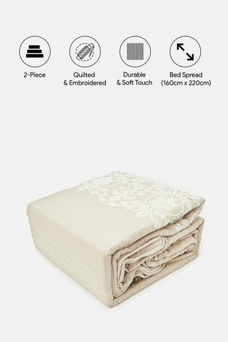 غطاء سرير مزخرف باللون البيج مكون من قطعتين (مقاس مفرد)