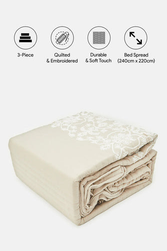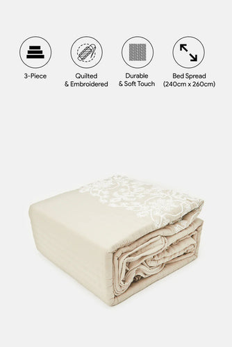 غطاء سرير مزهر مكون من 3 قطع باللون البيج (مقاس كبير)