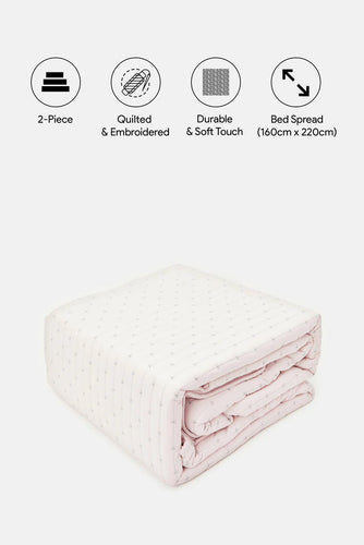 غطاء سرير وردي مطرز مكون من قطعتين (مقاس مفرد)