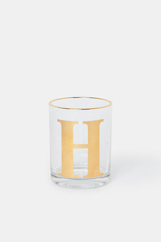 • كوب زجاجي شفاف مزخرف بالحروف الأبجدية (H)