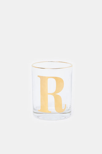 • كوب زجاجي شفاف مزخرف بالحروف الأبجدية (R)