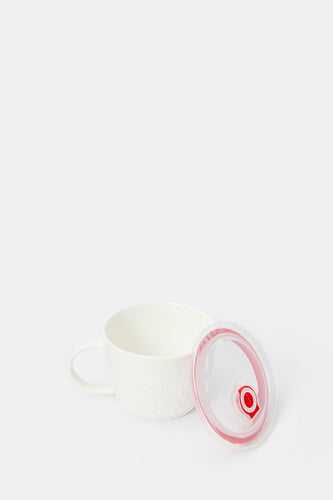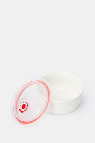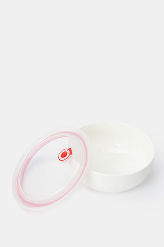 • حافظة طعام من البورسلين المنقوش باللون الأبيض
