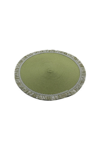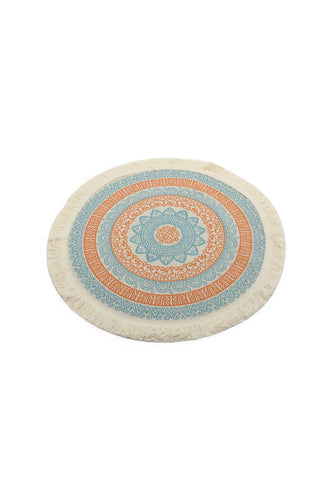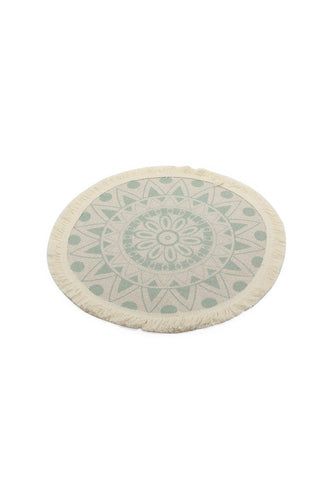 • مفرش طاولة مستدير باللون البيج والنعناع