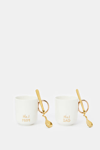 طقم مج مطبوع باللون الأبيض والذهبي (4 قطع)