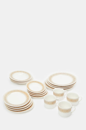 طقم عشاء مطبوع باللون البيج (20 قطعة)