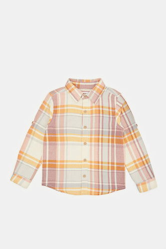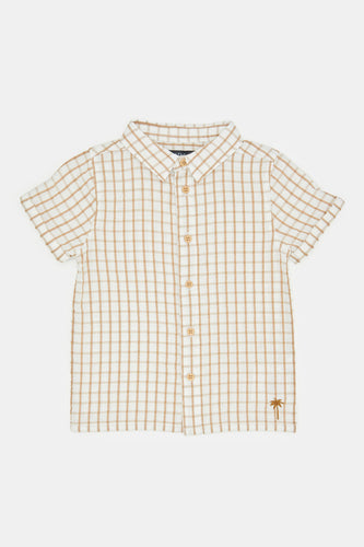 طقم قميص وتيشيرت كاروهات باللون والوردي والأبيض للأولاد الرضع (قطعتين)