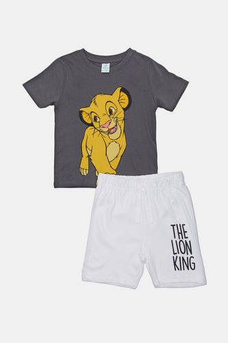 طقم بيجامة بطبعة سيمبا باللونين الرمادي والأبيض للرضع (قطعتان)