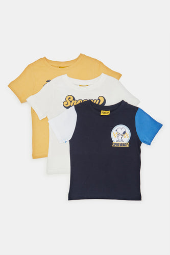 طقم تيشيرتات مطبوع باللون الكحلي و الأبيض للأولاد حديثي الولادة (3 قطع)