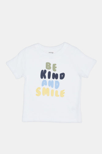 تيشيرت بطبعة باللون الأبيض للأولاد الرضع