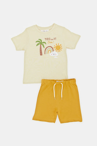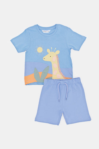 طقم تي شيرت وشورت أزرق للأولاد الرضع (قطعتين)