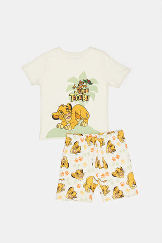 طقم بيجامة مطبوعة سيمبا كريمي للأولاد الرضع (قطعتين)