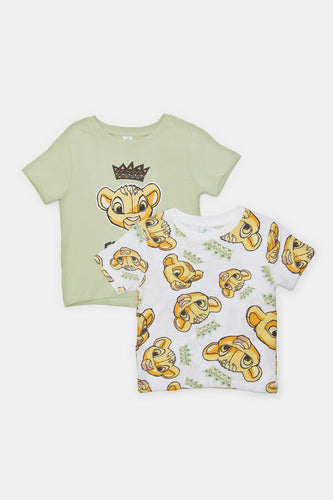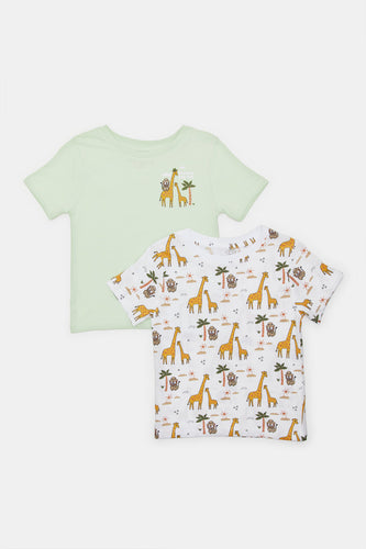 طقم تيشيرت مطبوع باللون الأخضر و الكريمي للأولاد الرضّع (قطعتين)