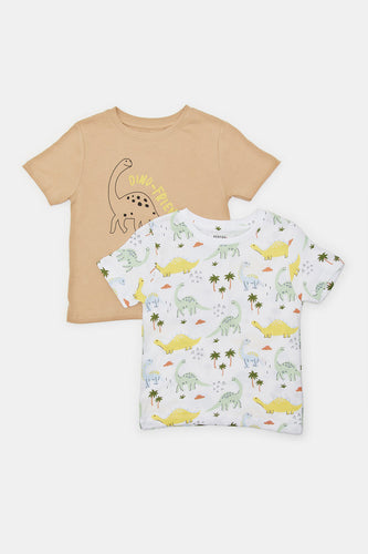 طقم تيشيرتات بطبعة دينو باللون الأبيض والبيج للأولاد الرضّع (قطعتين)