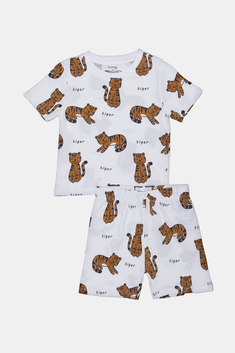طقم بيجامة مطبوعة باللون العاجي للأولاد الرضع (قطعتين)