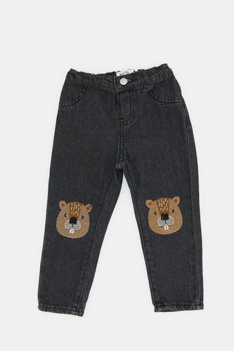 بنطلون جينز مزين باللون الرمادي الداكن للأولاد حديثي الولادة