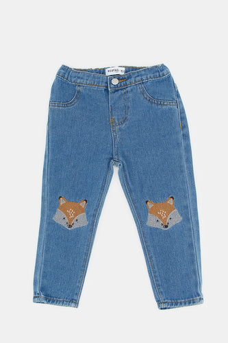 بنطلون جينز بطبعة فوكس باللون الأزرق للأولاد الرضع