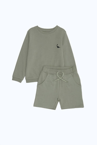 طقم كاجوال باللون الزيتي للأولاد حديثي الولادة (قطعتين)