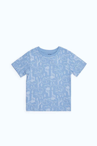 تي شيرت باللون الأزرق بطبعة الفيل وأكمام قصيرة للأولاد