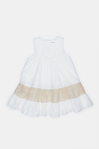 • فستان منقوش باللون الأبيض للبنات الرضّع