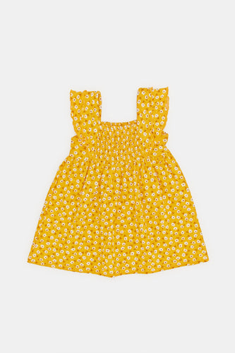 • فستان مطبوع باللون الأصفر للبنات الرضّع