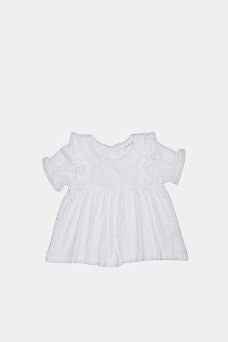 بلوزة بأكام منفوخة مزينة بالدانتيل باللون الأبيض للبنات حديثي الولادة