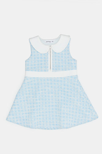 فستان بياقة بيتر بان باللون الأزرق للبنات الرضع