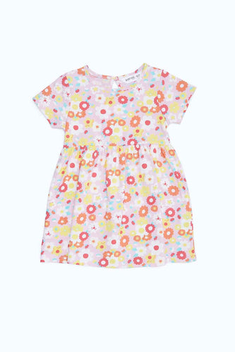 • فستان وردي بطبعة زهر للبنات حديثي الولادة