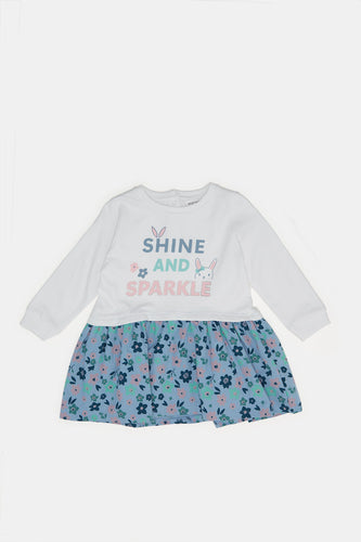 • فستان رياضي مطبوع باللون العاجي للبنات الرضع