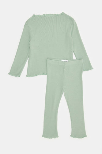 • طقم ملابس كاجوال مضلع بلون النعناع للبنات الرضع (قطعتين)
