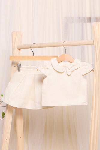 • طقم جاكار عاجيّ وذهبيّ للبنات الرضع (قطعتان)