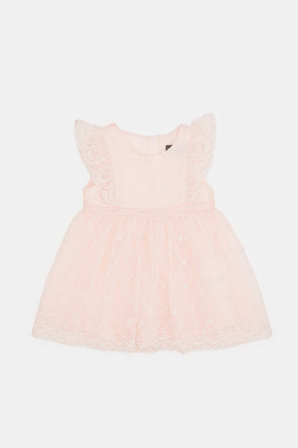 فستان مكشكش مطرز باللون الوردي للفتيات الرضع