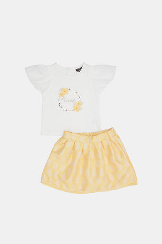 طقم تنورة وبلوزة باللون الأصفر والأبيض للبنات الرضع (قطعتين)