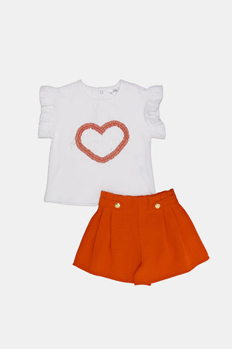 طقم جاكار باللون الأبيض والأحمر للبنات الرضّع (قطعتين)