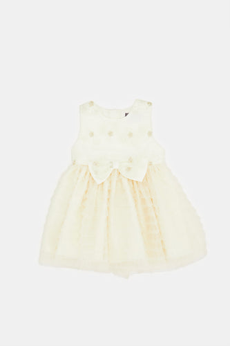 فستان بفيونكة أمامية مزين بتطريز عاجي للفتيات الرضع