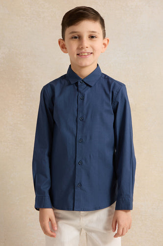 قميص أزرق داكن سادة بأكمام طويلة للأولاد