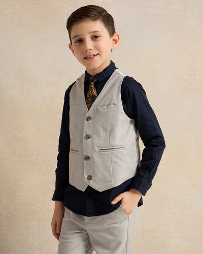 طقم سترة ومعطف وقميص رمادي للأولاد (3 قطع)