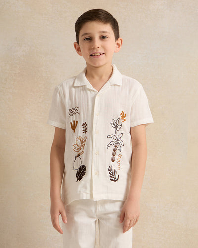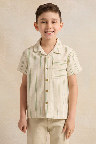 قميص أولاد مطرز باللون الزيتوني بأكمام قصيرة