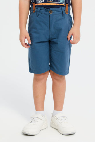 شورت بحمالات باللون الكحلي للأولاد الصغار