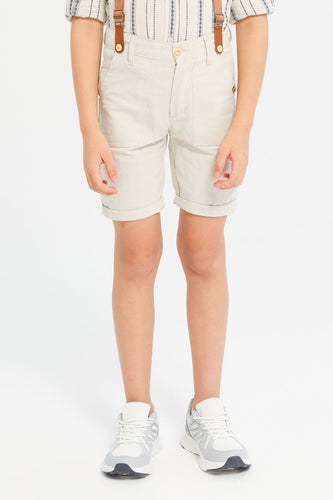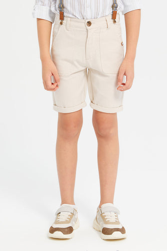 شورت بحمالات باللون البيج للأولاد الصغار