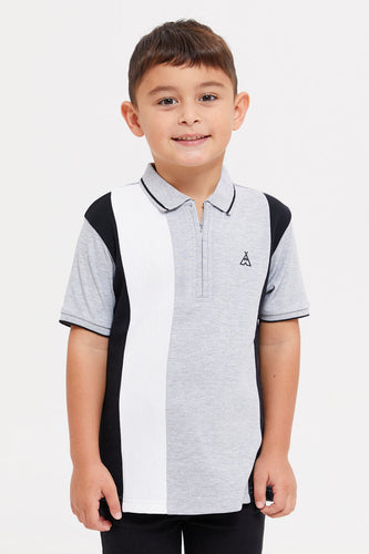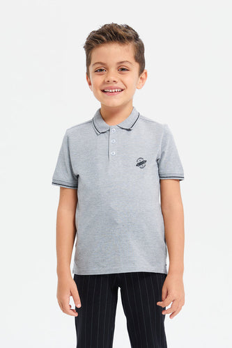 تيشيرت بولو باللون الرمادي للأولاد الصغار