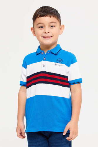 تيشيرت بولو باللون الأزرق والأبيض للأولاد الصغار