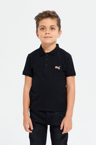 تيشيرت بولو جاكار باللون الأسود للأولاد الصغار