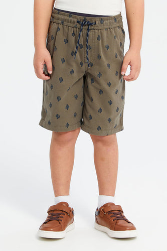 طقم شورت بطبعة باللون الأخضر و البيج للأولاد الصغار (قطعتين)