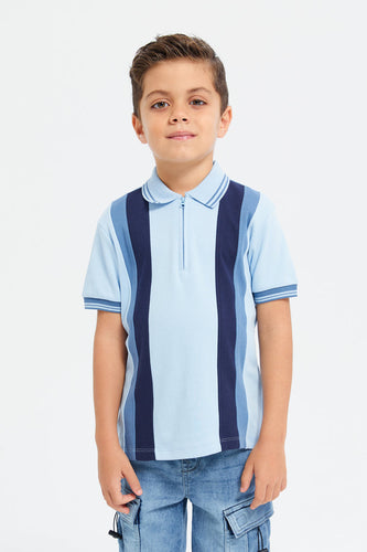 تيشيرت بولو مخطط بأكمام قصيرة باللون الأزرق للأولاد الصغار