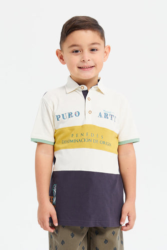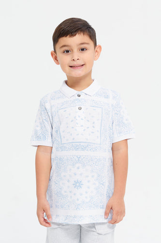 تيشيرت بولو مطبوع باللون الأبيض للأولاد الصغار