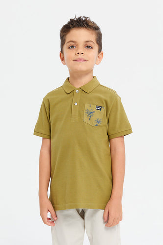 تيشيرت بولو باللون الكاكي للأولاد الصغار