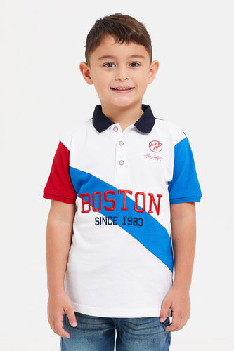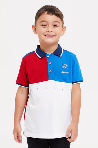 تيشيرت بولو باللون الأبيض والأحمر للأولاد الصغار