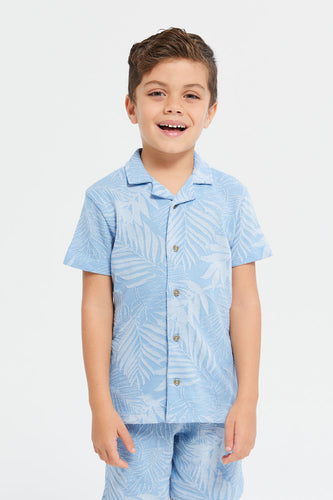 قميص جاكار باللون الأزرق للأولاد الصغار