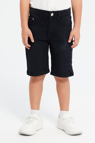 شورت ممزق باللون الأسود للأولاد الصغار