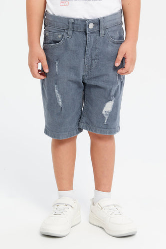 شورت ممزق باللون الرمادي للأولاد الصغار